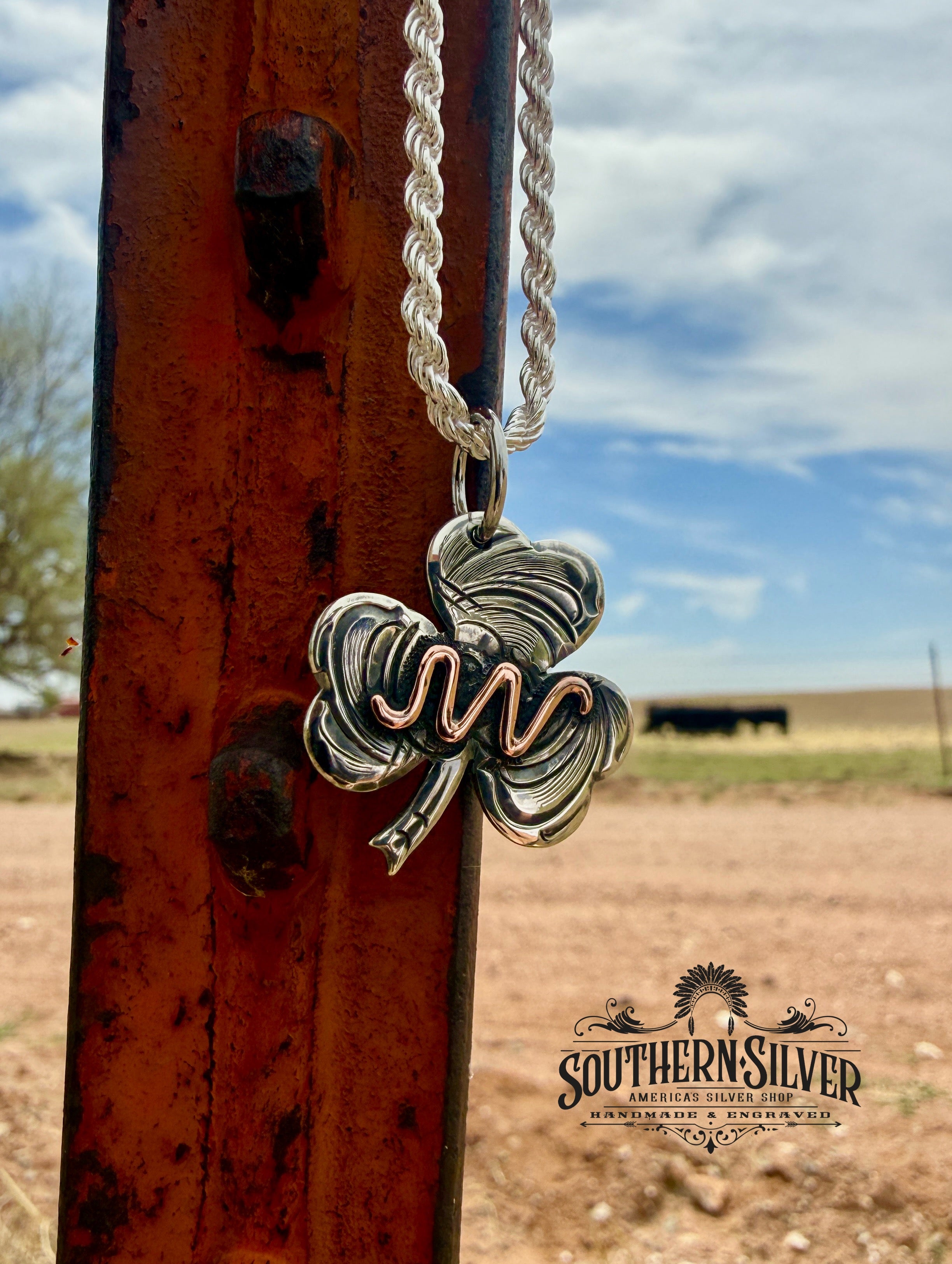 The Shamrock is made with solid sterling silver and fully engraved. You can personalize this one with Brands, Logos, Silhouettes or Initials. You also have the option of Copper, Silver or Brass for your personalization. Size on this one is 1.25".
