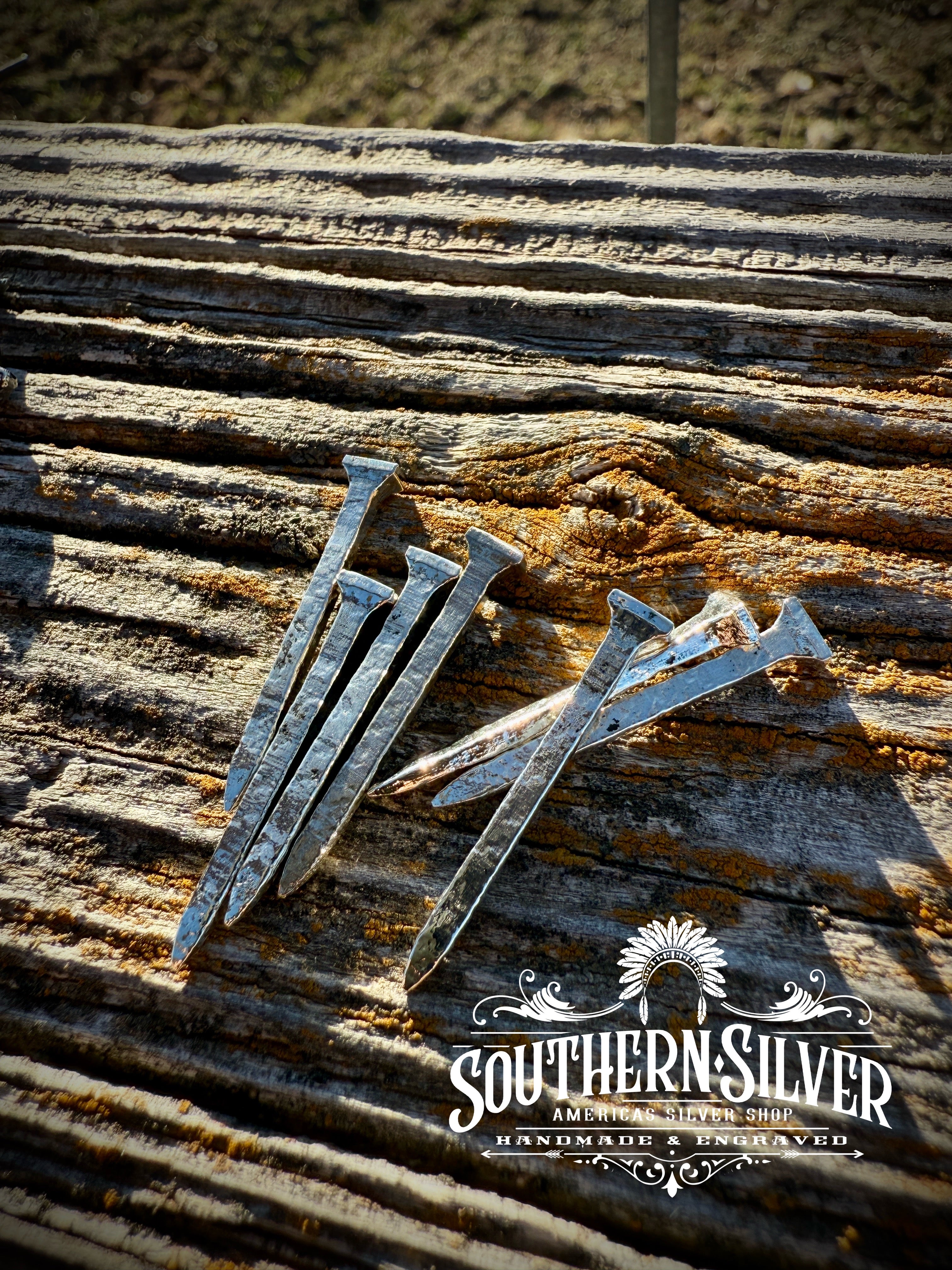 These solid sterling silver Horseshoe Nails will look killer in your cowboy hat. 1.2" in length and ready to ship!